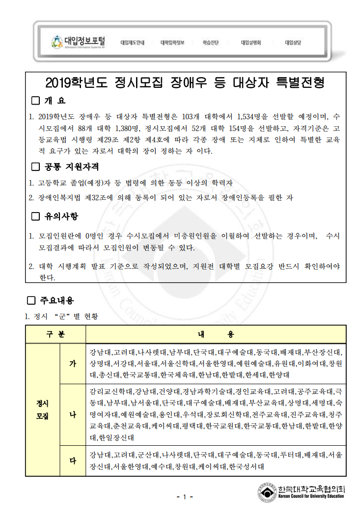 장애인 대학 특별전형 입학 비리(장애우 대입상담)