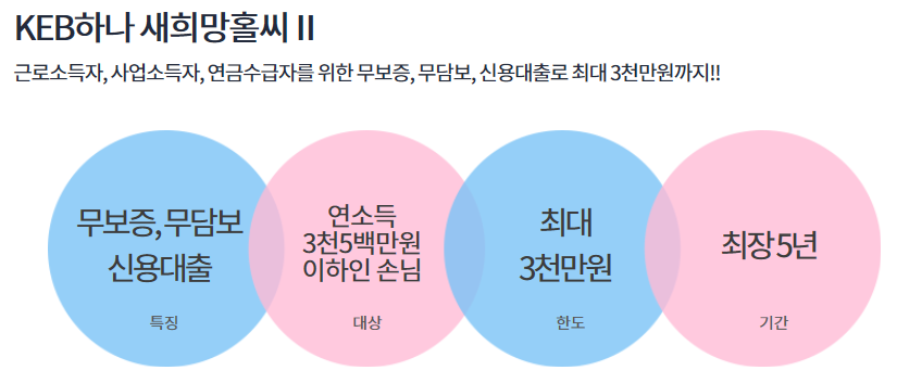 KEB하나 새희망홀씨2에 관한 정보입니다. 시중은행에서 취급하는 대출상품이긴 하지만 서민을 대상으로 하는 정부정책 대출상품입니다.