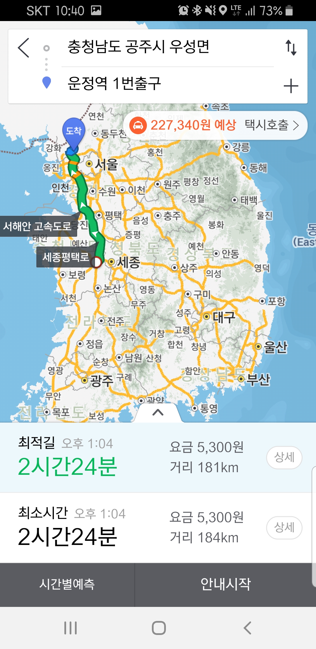 일요일 광주광천터미널 9시 탑승->운정역 13시05분 도착 = 총 소요시간 4시간 5분