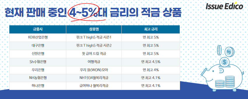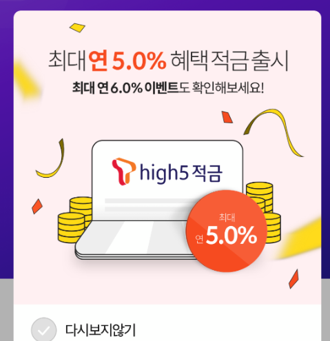 정기적금이자, 예금 추천 핀크 T high5 적금높은이율5%
