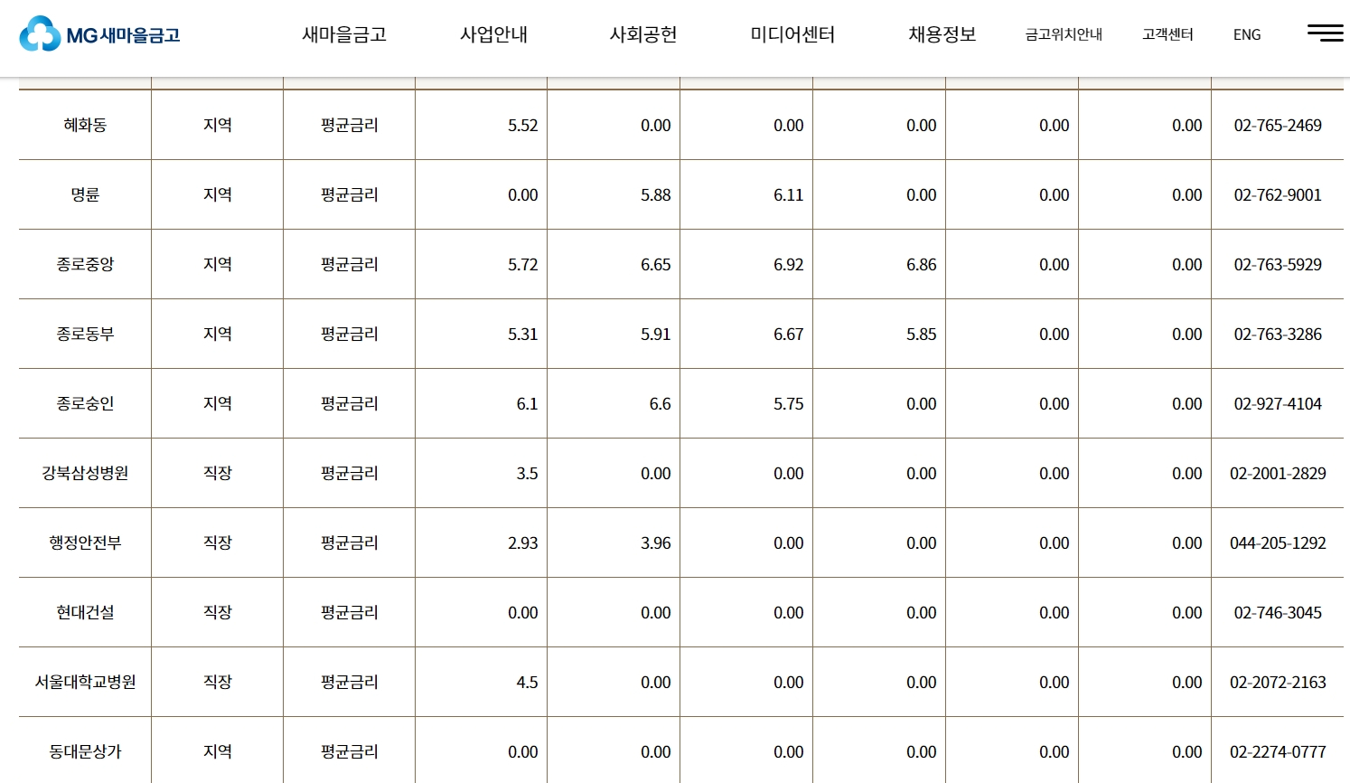 금리는 지점마다 다릅니다. 1등급 기준으로 행정안전부 지점은 2.93%인데 지점 특성상 공무원에게 저금리로 대출해 주는 듯 합니다. 지점마다 금리가 다르므로 MG새마을금고 홈페이지에 지점별 금리정보를 확인하시고 전화로 상담하여 자신의 금리를 추정하면 될듯 합니다. 모든 금융권의 대출은 대출자의 신용등급, 신용도, 기대출현황을 고려하여 대출금리가 책정됩니다. 대출기간은 최장 5년까지입니다. 대출한도는 5천만원까지입니다. 담보를 제공할 시 4억원까지도 대출이 가능하며, 담보대출의 경우 별도의 상담이 필요합니다.