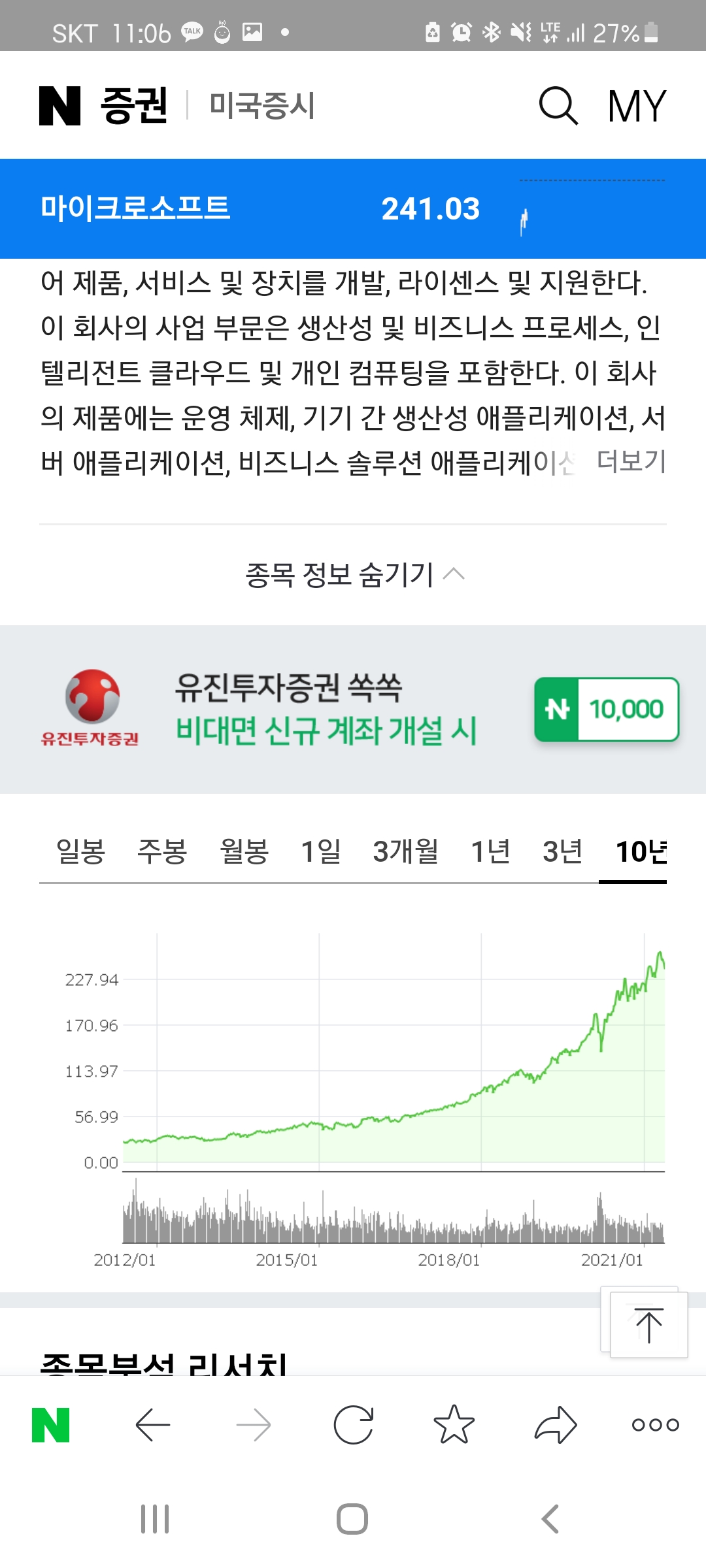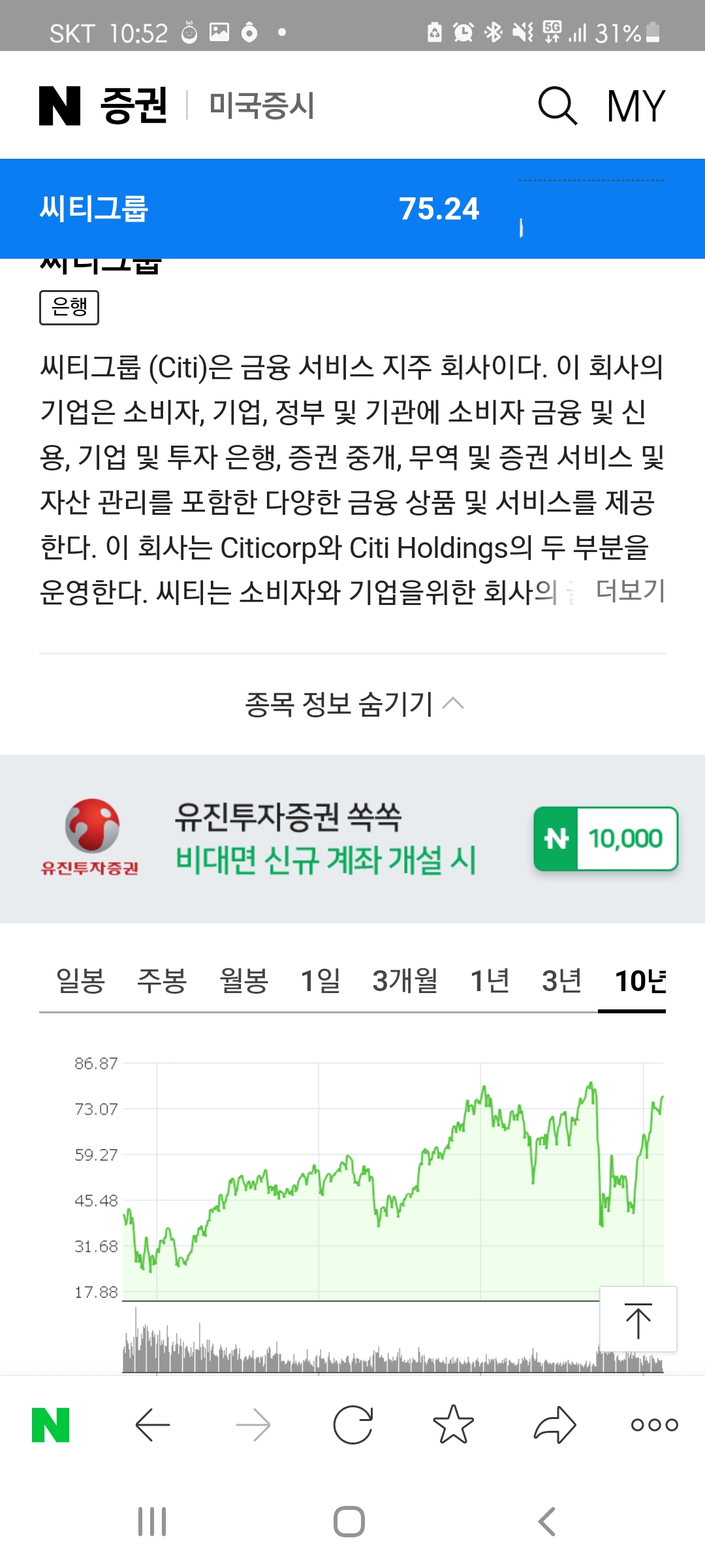 지난 10년동안 참 많이도 떨어졌는데 이제서야 반등하는 모습을 보이고 있습다. 이렇게 기름값 오른다는 뉴스에 한숨만 쉬시지 마시고 원유에 투자한다면 기름값이 오르는 뉴스에 기쁨을 누리실 수도 있습니다.