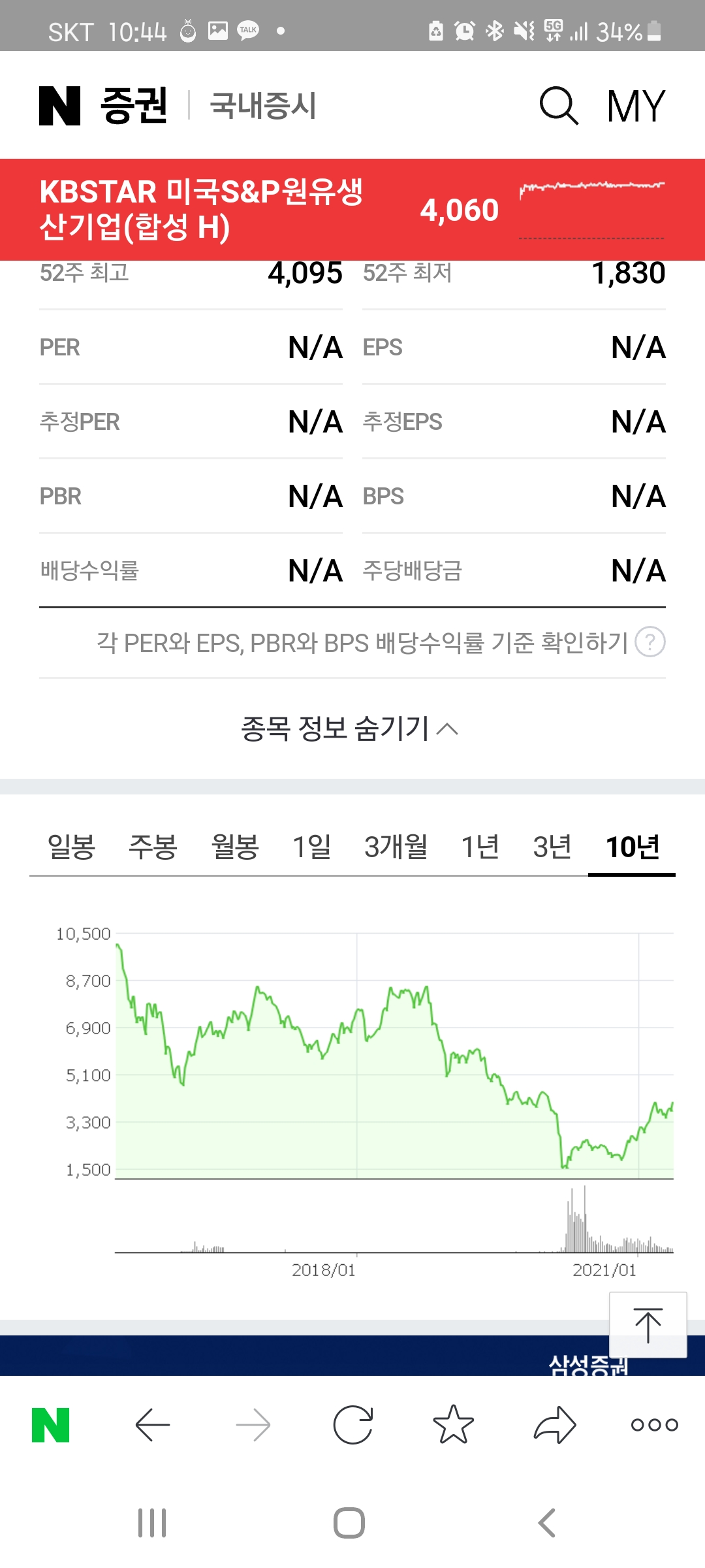 미국 S&P에 상장된 원유생산기업에 투자하는 ETF도 있습니다. "KBSTAR 미국S&P원유생산기업"이라는 종목입니다. 52주 최저가가 1800원대였는데 현재 주가는 4000원대입니다.