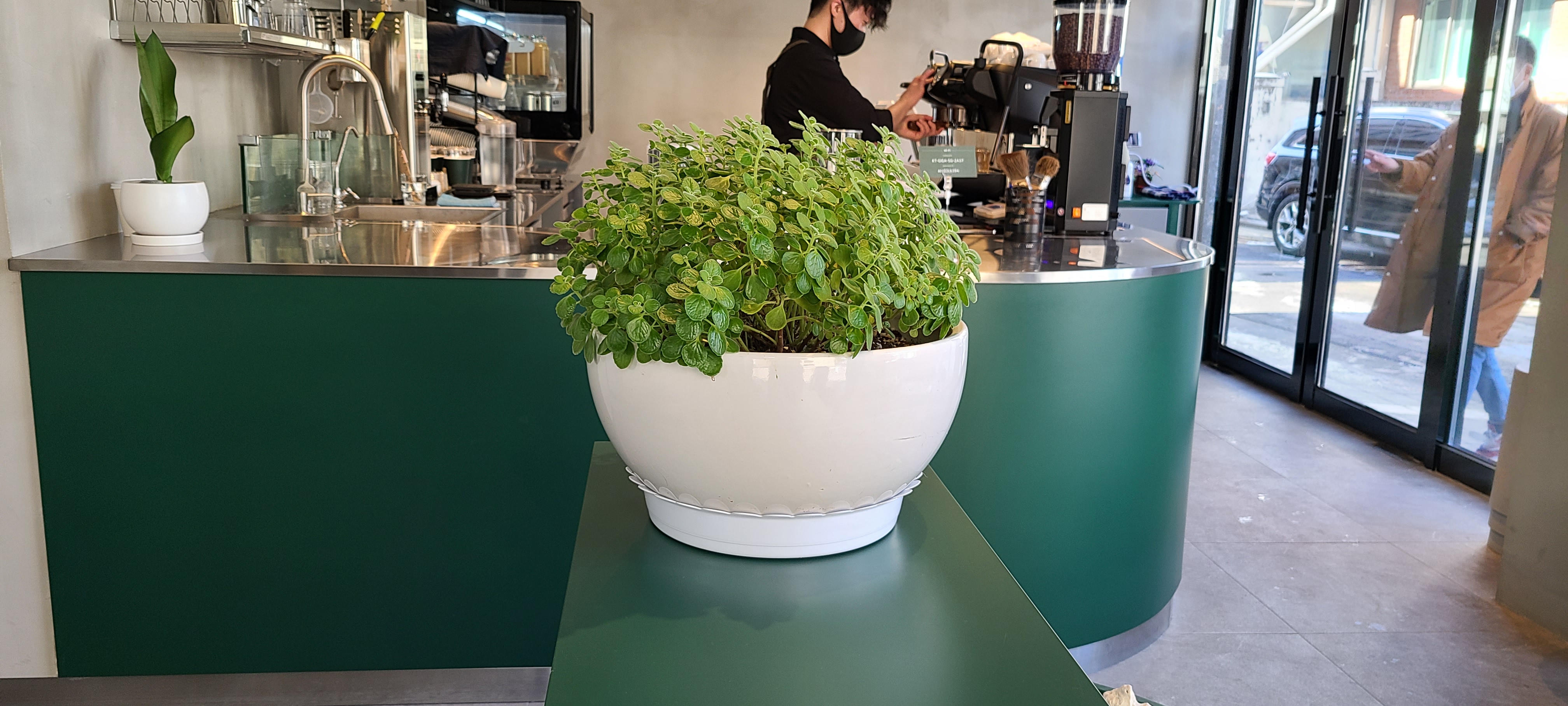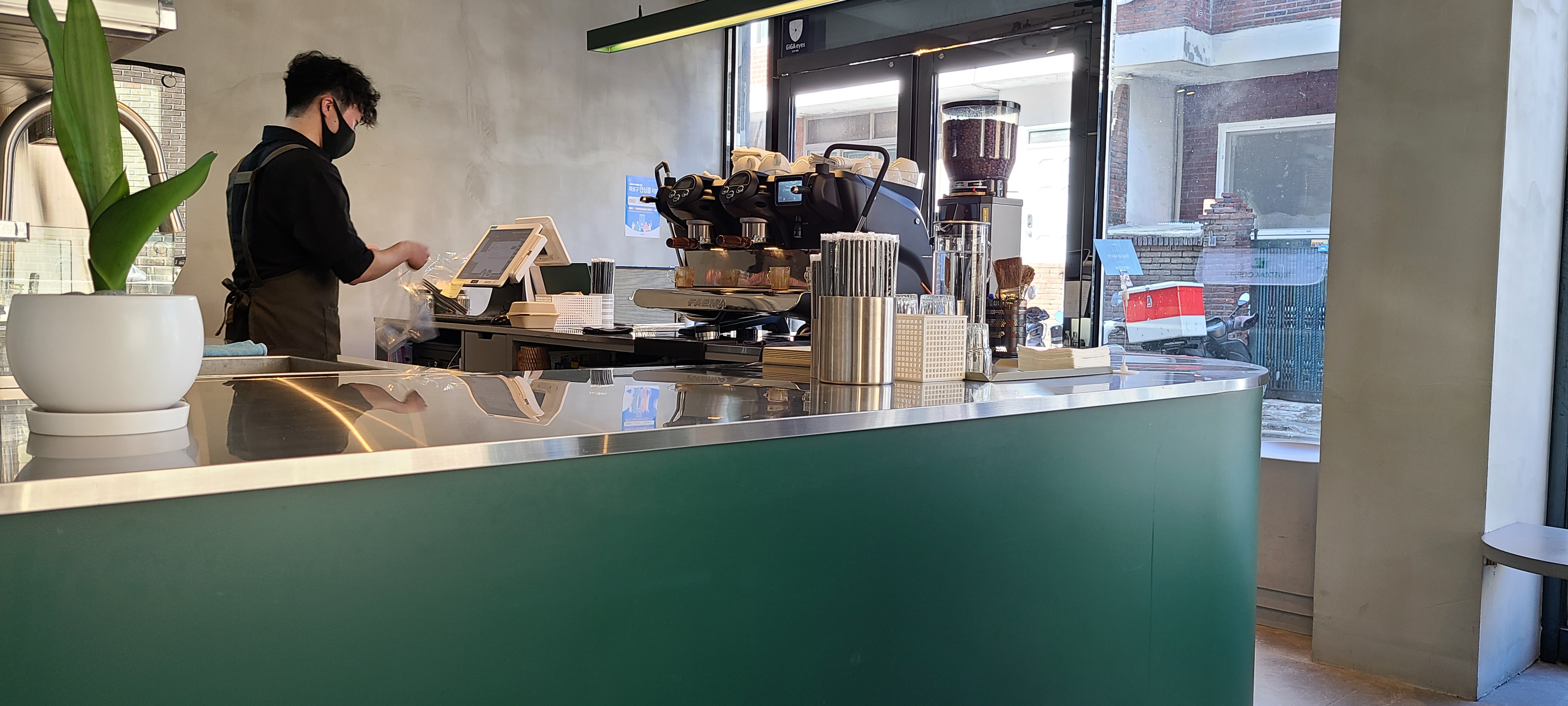 직원은 한분 근무하고 계셔요. 홀 중간에 파릇파릇한 식물이 공간에 생기를 불어 넣어 줍니다.