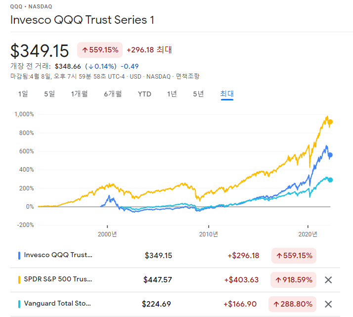 성장주로 2배, 5배 이상의 수익을 매번, 지금까지 순수 투자수익률로 기록하는 투자자는 이런 주식에 관심을 가질 필요가 없습니다. 주식투자가 가지는 리스크를 적당히 헷지하며, 예적금 등 타 투자자산 대비 안정적이며, 높은 수익률을 희망하는 투자자분들은 QQQ, SPY가 최적의 투자처가 될수 있습니다.
