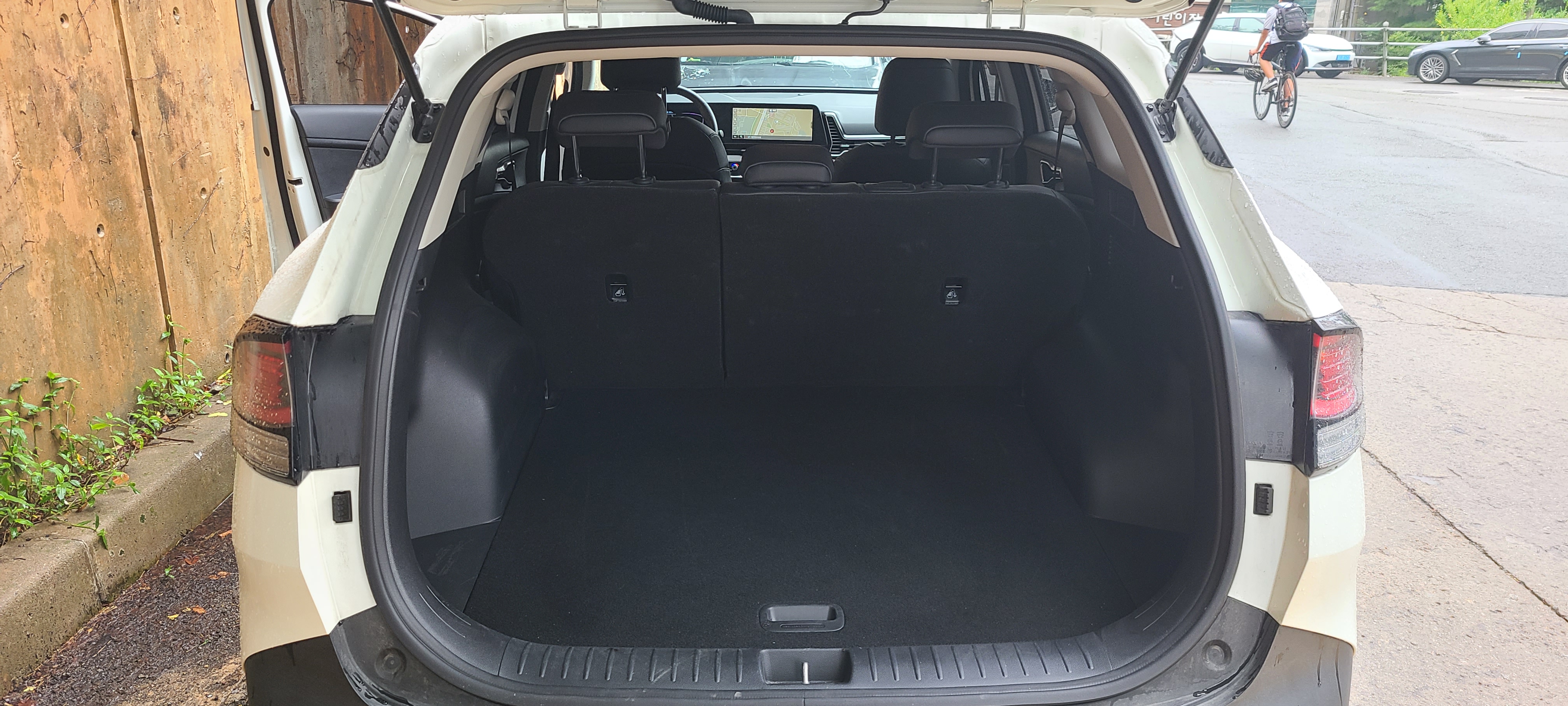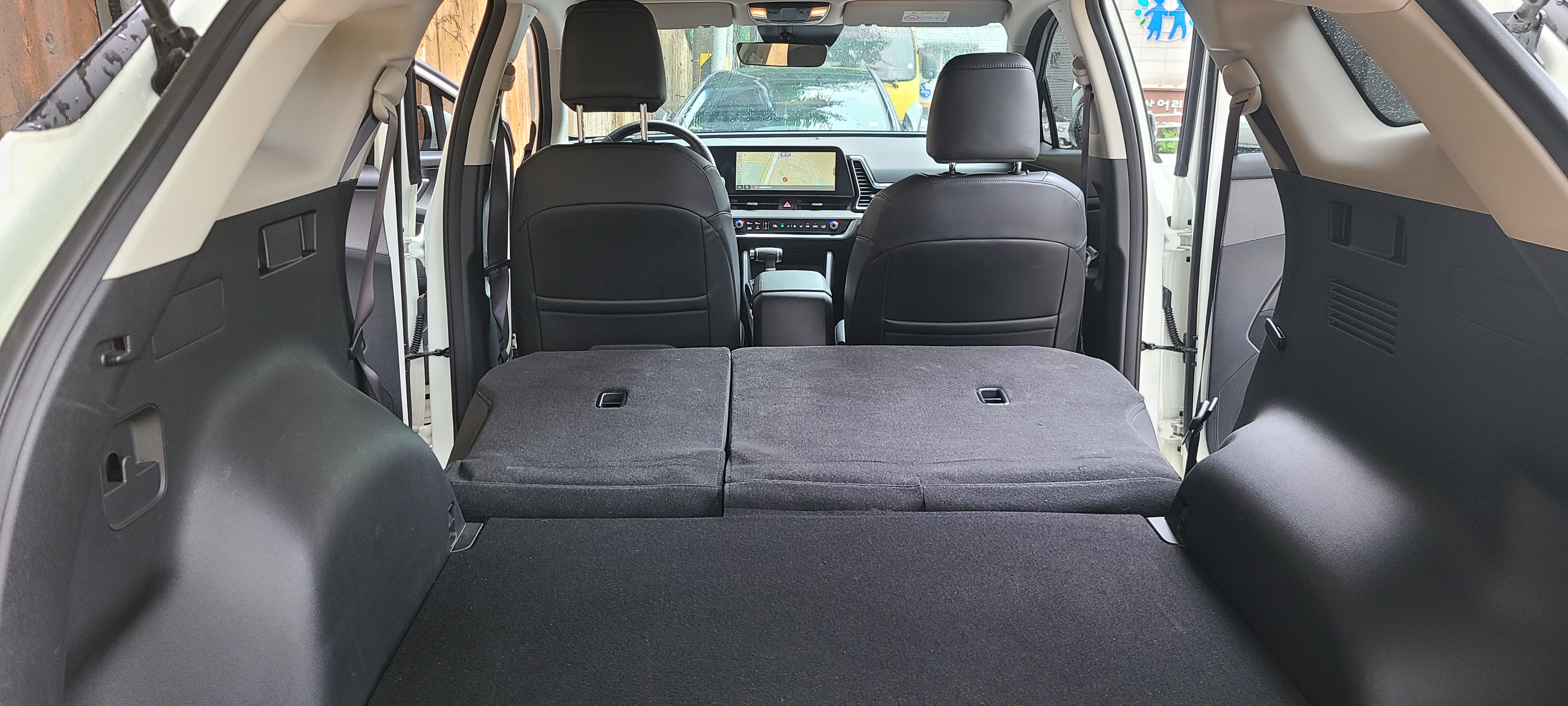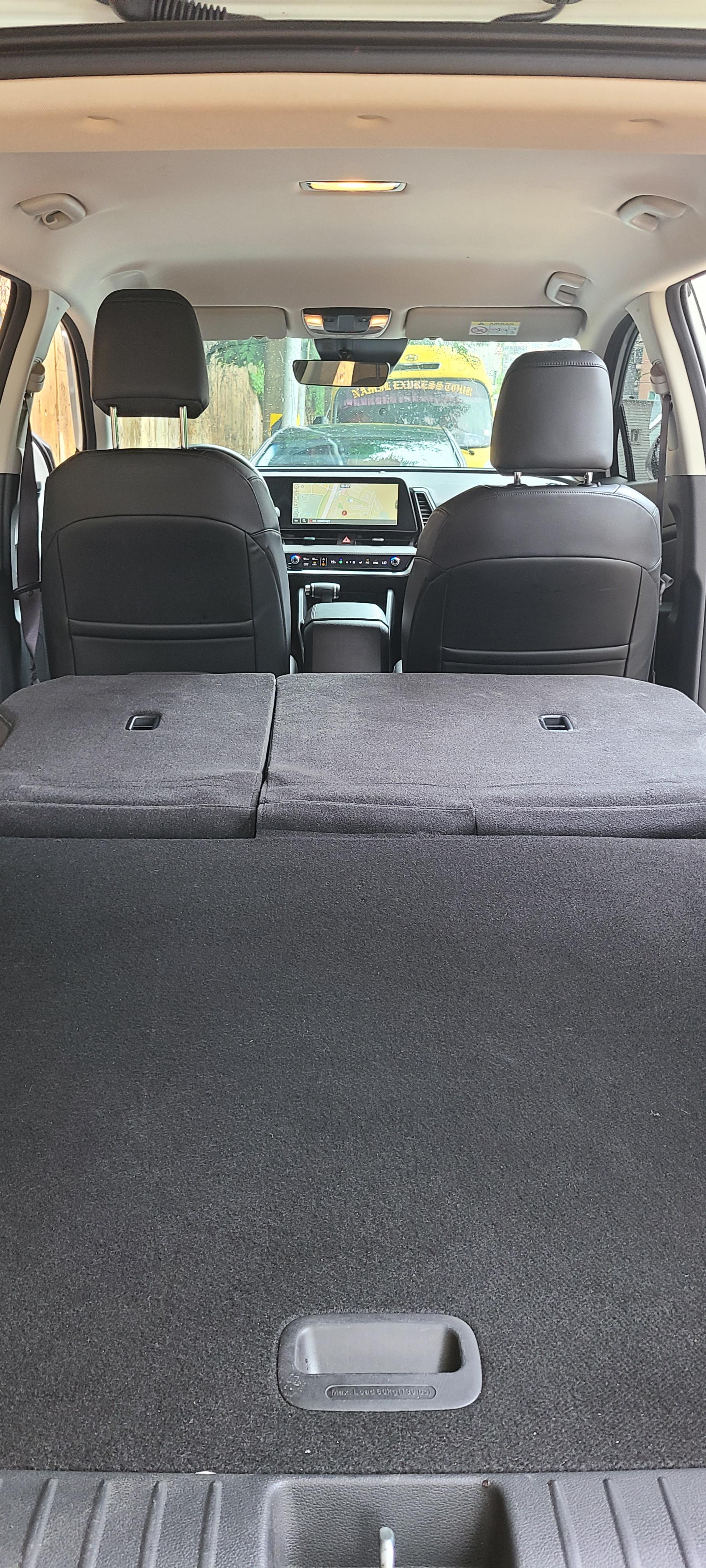 2열이 완전 접혀져 차박이 가능합니다. 성인 2명 누어 잘수 있습니다. 생각 이상으로 2열과 트렁크 공간을 통합하니 넓은 공간이 연출되었습니다. 차박 뿐 아니라 적재용량이 커서 짐을 이동하는데 사용해도 손색이 없을 정도입니다.