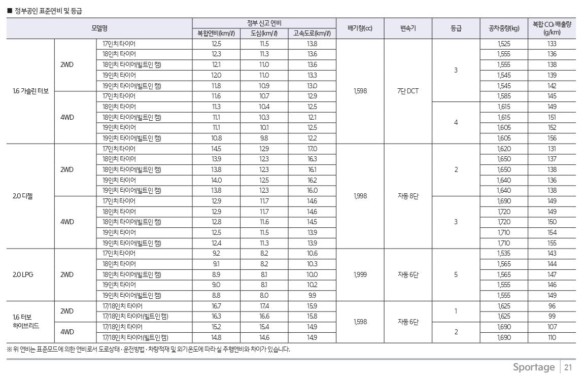 주행성능은 준수합니다. 에코모드에서도 가속력이 충분해 만족하고, 스포츠 모드에서는 가속력이 추가되어 운전하는 재미를 느낄 수 있습니다. 복합연비는 12~14km/l 수준입니다. 부드러운 연비운전을 하면 고속도로 기준 16km까지도 가능할듯 합니다. 연료 종류별로 휘발류, 디젤, 하이브리드, LPG가 다 라인업되어 있습니다.