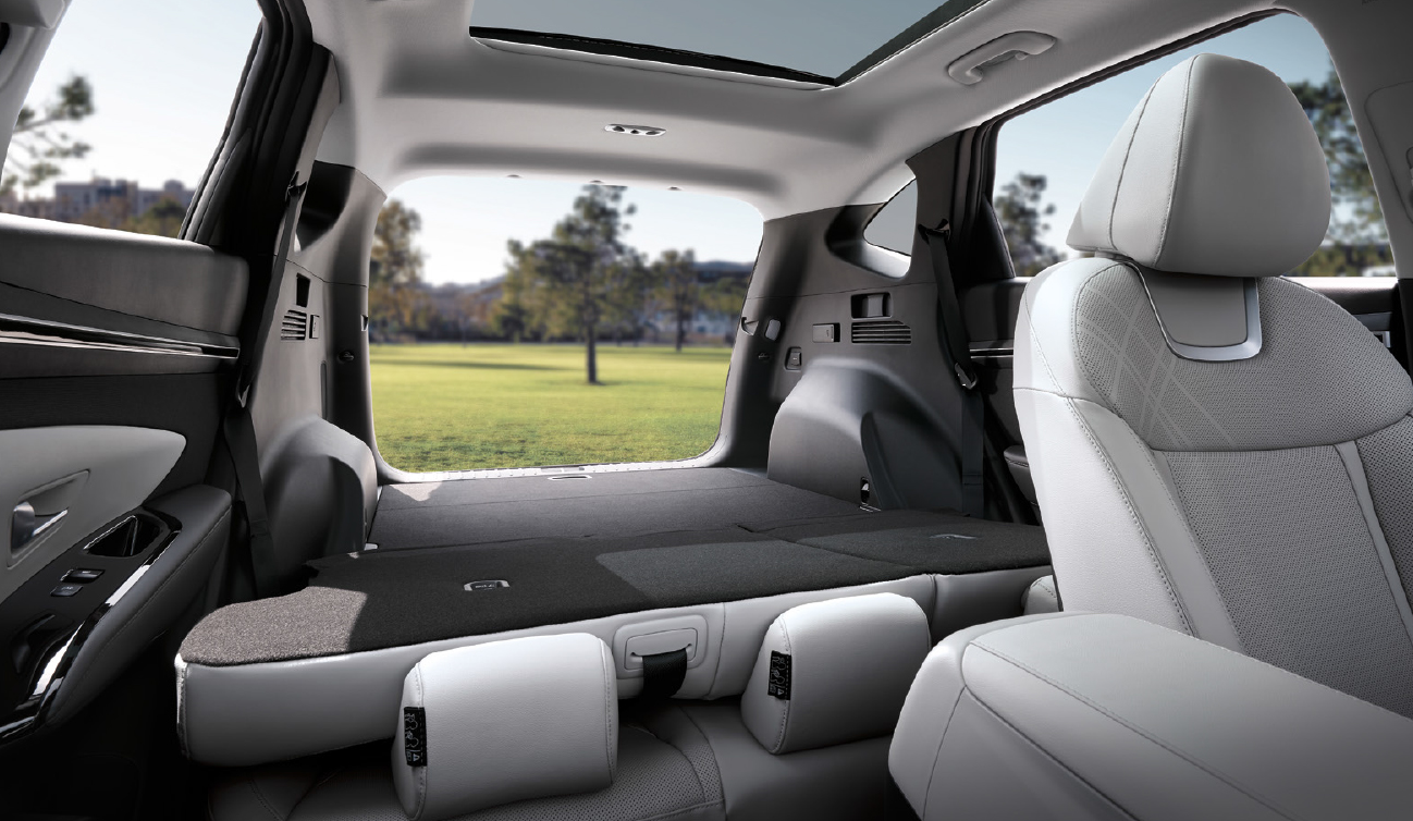 2열을 폴딩하여 트렁크 공간과 연결하면 아래처럼 성인이 누울 수 있는 공간이 연출됩니다.