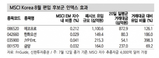 에코프로머티얼즈와 한진칼이 MSCI 한국지수에 새로 편입되었습니다.