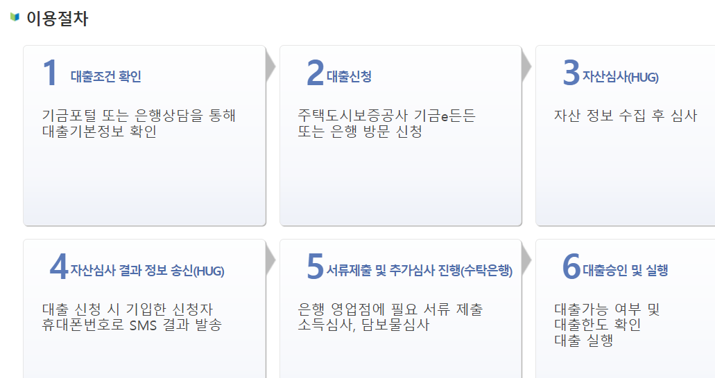 - 대출 신청: 주택도시보증공사 기금e든든 홈페이지 또는 수탁은행 방문 신청