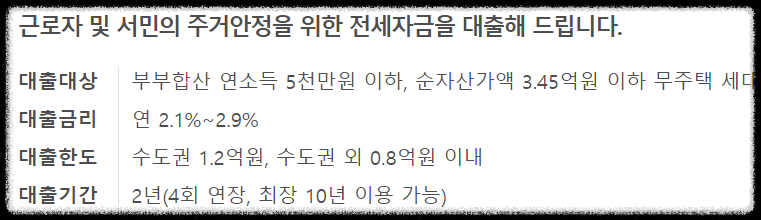- 대출 기간: 2년 (4회 연장하여 최장 10년 이용 가능)