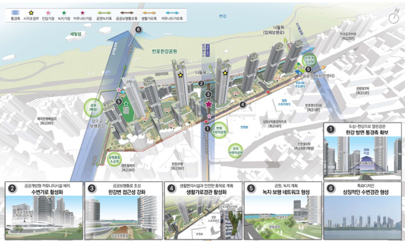 특히, 잠수교 보행교 전환 사업과 연계해 한강 접근성이 더욱 개선될 예정입니다. 입주민들은 한강변을 따라 이어지는 보행 네트워크를 이용해 더욱 쾌적한 생활을 누릴 수 있습니다.