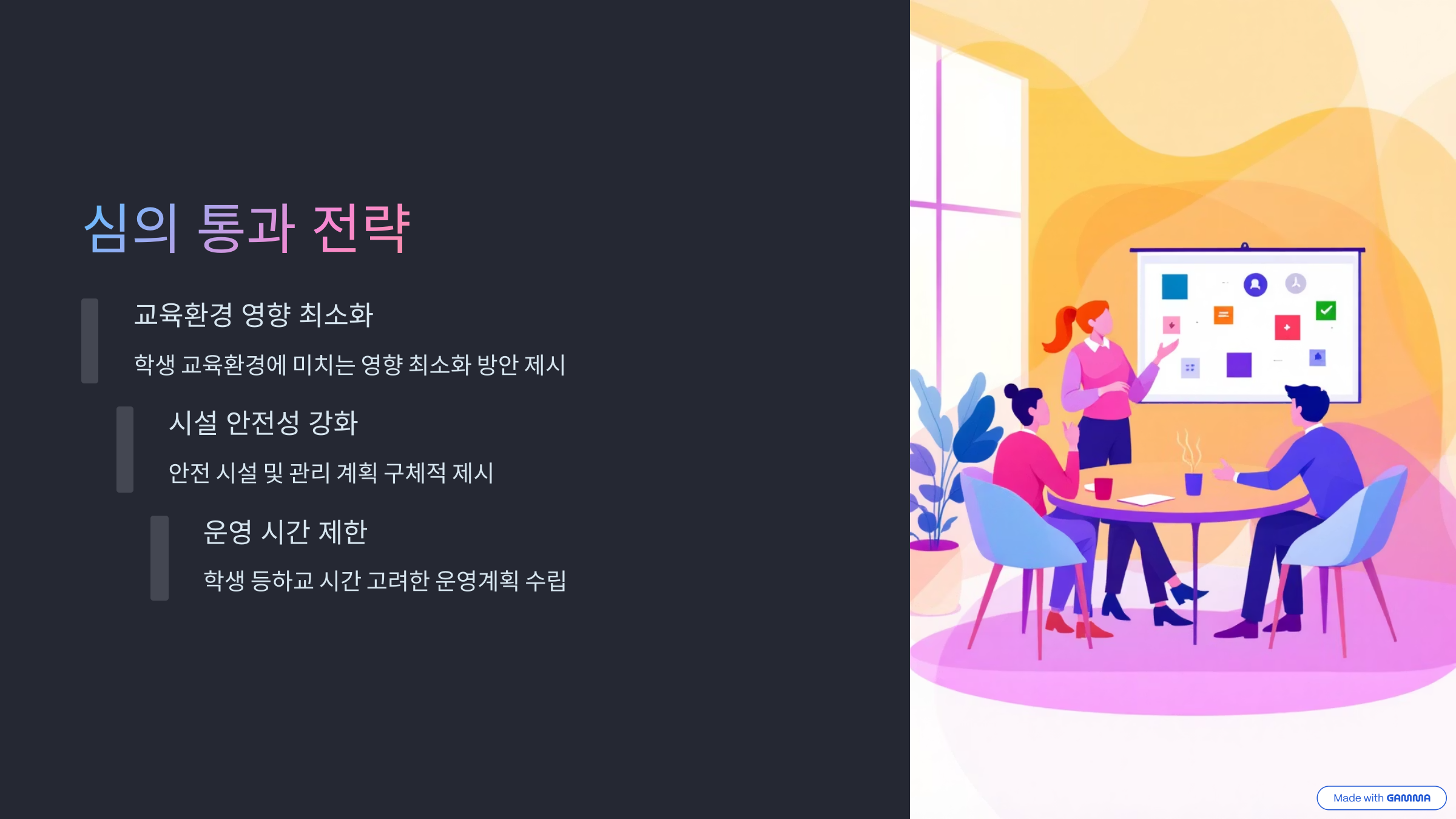 - 교육환경위생정화위원회 심의 신청: 지역 교육지원청에 심의 신청서를 접수하고, 설치 계획서, 도면, 소음 차단 조치 등 관련 서류를 함께 제출해야 합니다.