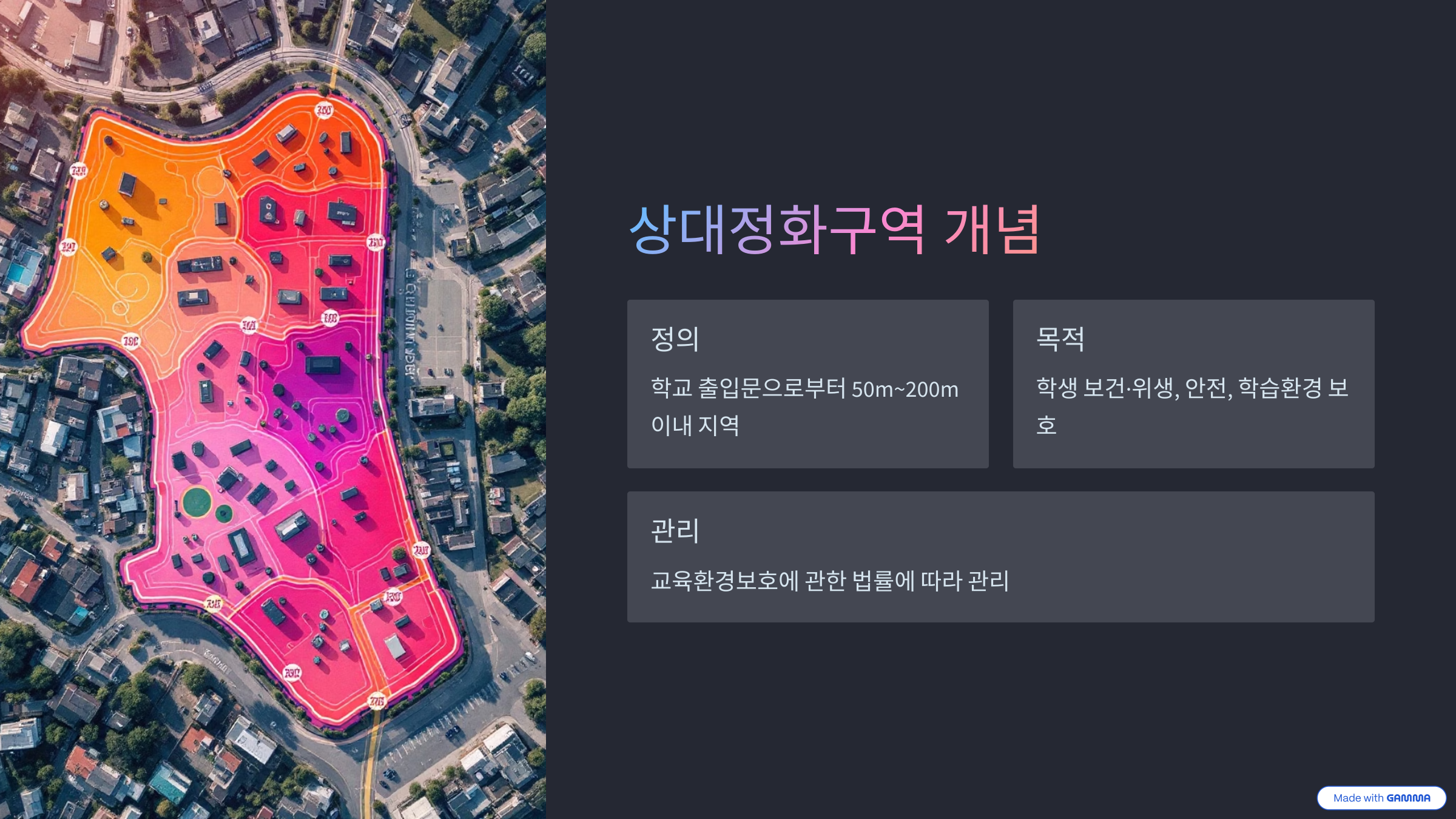 상대정화구역은 교육환경보호구역 중 하나로, 초·중·고등학교의 출입문, 담장, 경계로부터 50미터에서 200미터 이내의 지역을 말합니다. 이 구역은 학생들의 건강과 안전, 학습권 보호를 위해 설정된 법적 보호 구역입니다.
